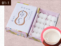 富岡銘菓くず湯「まゆこもり」。群馬の特選品である繭をかたちどり、厳しく吟味された葛粉を使用。葛には血行を良くし、冷え性やむくみを改善する働きがあるといわれています。「飲むくず湯」としては絹のようななめらかさをお楽しみいただけます。さらに田島屋からはお好みのトッピングで新感覚の「食べるくず湯」をご提案します。